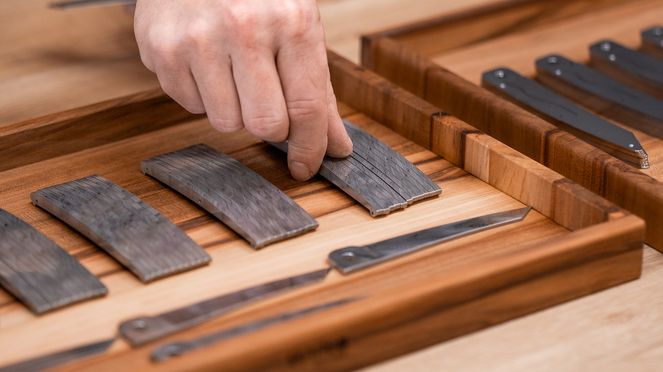 Der Griff des Taschenmesser Volldamast goldfarbig hat konvexe und konkave Vertiefungen. Diese verleihen der Taschenmesser Volldamast goldfarbig Oberfläche einen unverwechselbaren Charakter. Das Taschenmesser Volldamast goldfarbig mit High-Tech Keramik, Komponenten aus der Uhrenindustrie und einem mit PVD beschichtetem Griff ist bis ins letzte Detail handwerklich gefertigt.